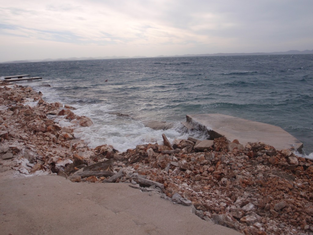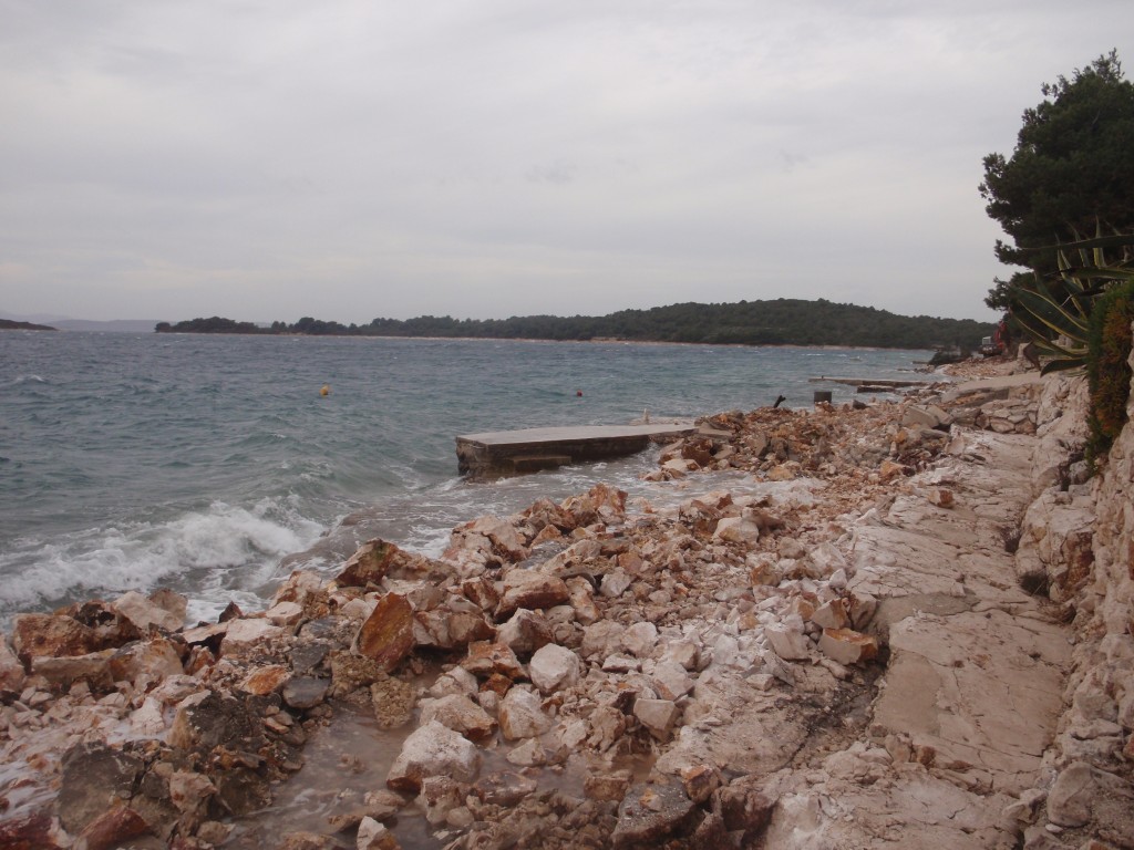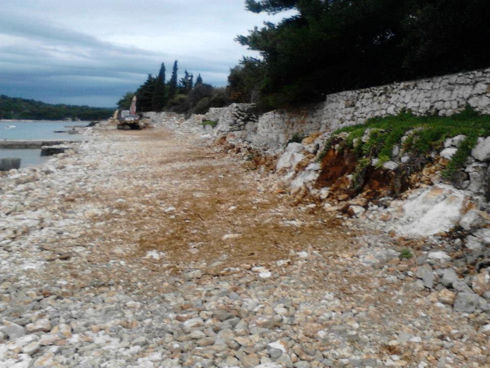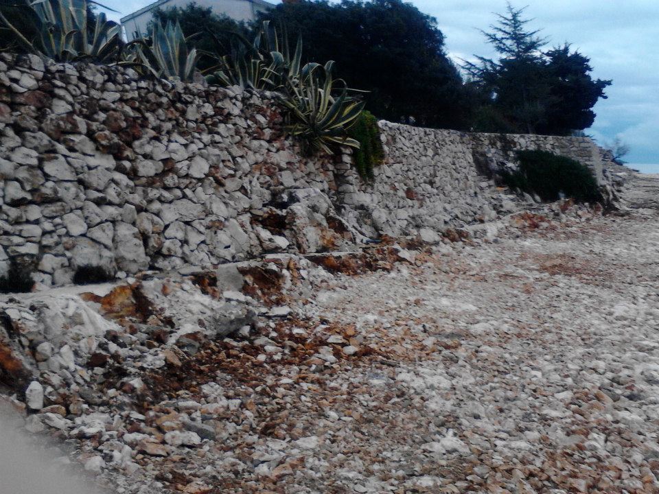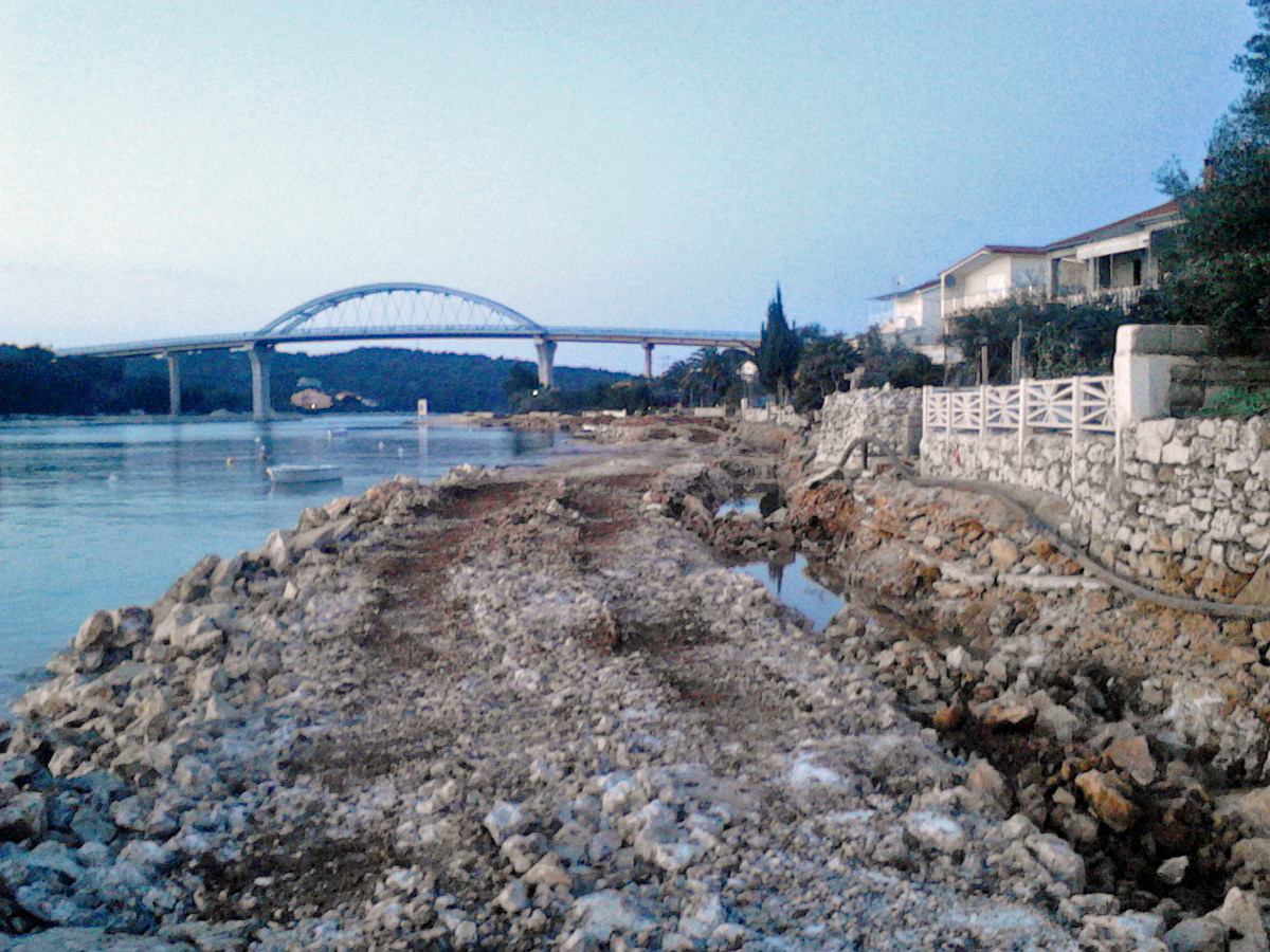 Radovi su trebali biti nastavljeni 15.9., ali obećanja bivšeg načelnika za novu vlast ne vrijede. Nije izgrađen zid koji bi štitio šetnicu (i kanalizaciju) od jakih valova.