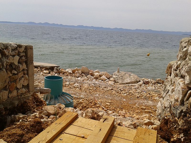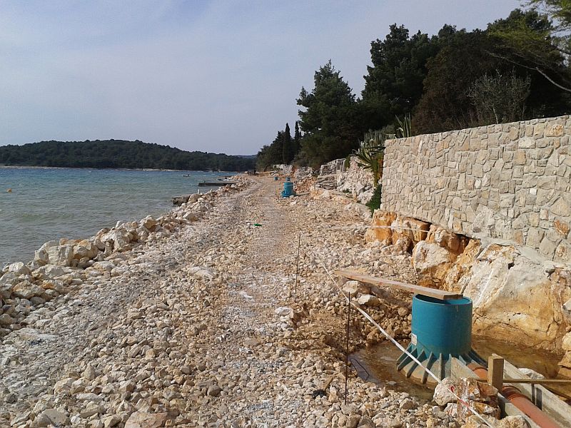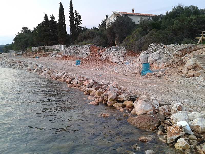 Radnici su ovih dana navodno došli na otok i uskoro će početi kopanje. Duž obale su postavljene oznake koje upućuju na to da će biti razrovane stijene uz obalu. Umjesto devastiranja obale kanalizacija bi se mogla postaviti kroz vrtove, 10ak metara od obale. Ako netko ima mogućnosti utjecati na projektante i izvođače radova sad je krajnje vrijeme.