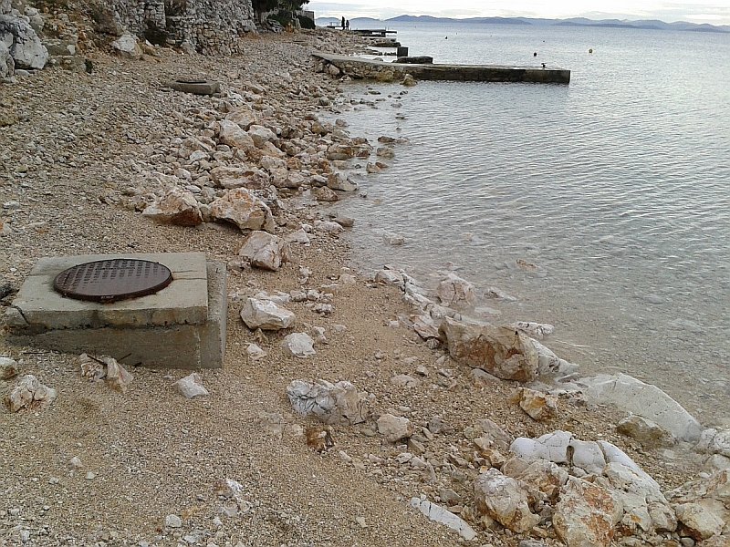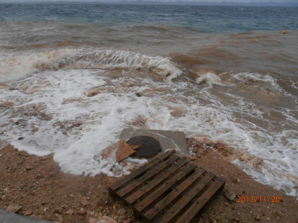 Kanalizacijski šahtovi uz obalu su otvoreni i u njih je upalo sitno kamenje tijekom zadnjeg juga. Ipak, nisu valovi otvorili šahtove nego radnici koji su nešto pokušavali popraviti. Nekoliko šahtova je ostavljeno tako otvoreno i bez ikakvih sigurnosnih ograda ili oznaka.