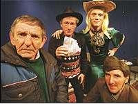 Malnarovi glumci Jaran i Ševa pojavili su se poslijepodne ispred zgrade Sabora s kartonskom lutkom Ive Sanadera odjevenom u policijsku uniformu i intervjuirali saborske zastupnike.