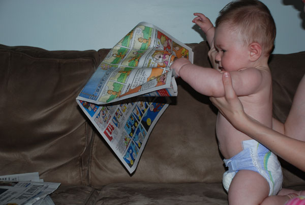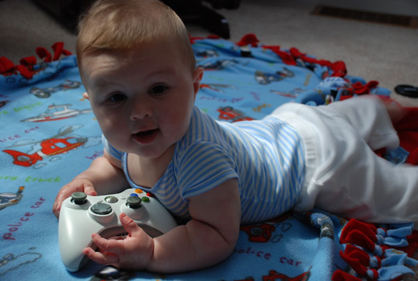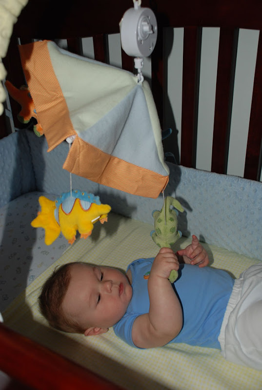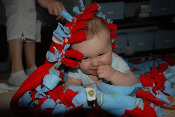U petak smo proslavili Edin 6 mjesec – isli samo na party (ne za njega, bili smo gosti) i on je bio hit kao sto je uostalom hit i centar paznje gdje god ga odvedemo. Obozava da bude medu puno ljudi, svima se smije, u svakog gleda, sve ga zanima. Nevjerovanto je kako je drustven i kako se ne plasi se ljudi koje nikad nije vidio. Jedino ne voli doktora i medicinske sestre koje ga bockaju vakcinama. U utorak smo bili na sestomjesecnom pregledu i on je bio pravi dobrica. Mislim da bi ja plakala vise nego sto je on plakao da su mene tri inekcije ubole cry Dogurao je na 28.5 inca (72.4 cm), a tezak je 21 lb 2 oz (9.58 kg). U 90om je procentu i za visinu i za tezinu – stvarno je veliki, a nas leda bole ako ga imalo duze nosimo. Zato ga sad polako ucimo da puze! U stvari, on se sam polako uci a mi samo strahujemo sta ce biti kad propuze jer i sad ga ne smijemo samog ostaviti, u sekundi se stvori na drugom kraju sobe. Kako mu je krenulo dobre su sanse da ce do kraja ovog mjeseca propuzati.
