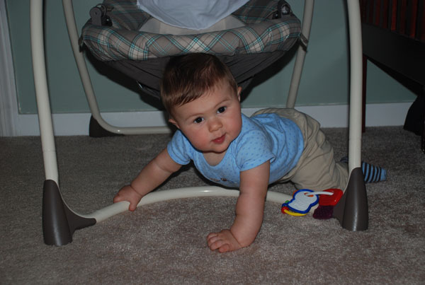 U utorak je nas mali bebac propuzao! I sto je najbolje i dragi i ja smo bili tu i vidjeli ga i onda mu pljeskali od srece :) Vec 2-3 sedmice Edo se spremao da pocne puzati. Prvo je mogao samo da se podigne "na sve cetiri" i da se ljulja u mjestu. Onda je poceo da polako pomjera nozice, ali nije bas znao sta da radi s rukama. Poslije toga se nozicama pomijerao "jedan-dva", podigao bi jednu ruku i spustio se lezeci na pod i nastavio bi da se valja dok nije dosao do zeljene igracke. Ova zadnja faza je trajala nekih 10 dana. U utorak ujutro, prije nego sto smo krenuli na posao izvadila sam ga iz krevetica na pod da se malo igramo. On se iz sjedece pozicije okrenuo u poziciju puzanje (to je naucio tek poreko vikenda) i krenuo "jedan-dva". I onda nastavio "tri-cetiri-pet-sest"! A nas dvoje nismo mogli da vjerujemo. Gledali smo jedno u drugo i vikali "on puze, on puze, mali Edo je propuzao", pa smo mu pljeskali i uzeli ga da ga gnjavimo, a on.. on je bio sav sretan i nasmijan. Dragi ga je odmah stavio na drugi karj sobe da vidimo hoce li opet, i naravno Edo je opet dopuzao do nas. Bilo je jednostavno nevjerovatno. A vec u srijedu bebac je bio mala puzajuca masina! Cim ga stavis na pod, on ode. I to ode tamo gdje ne bi trebao da dira sto ne bi trebao. Isti dan je otkrio da su uticnice na zidu veoma interesantne (vrijeme je za baby-proofing!). A najslade ga je gledati kad ode do kutijice sa igrackama, prevrne je i onda vadi igracke dok ne dode do one sa kojom zeli da se igra. Juce je skontao kako da zaobide, tj. puze oko prepreke (mene) ako je igracka iza mene, ali jos mu ne uspjeva da puze preko mene :) prede rukama, pa se onda zaglavi jer jos ne zna da podigne noge. no sigurna sam da ce i to uskoro nauciti. Ako prije toga ne nauci da hoda jer vec je poceo da pokusava da se podigne. Jednostavno su nevjerovane promjene koje se desavaju, nevjerovatno ga je gledati kao se sam snalazi po svojoj sobi i igra se s kojom on igrackom zeli, a kao da je juce bilo kad smo ga onako malog donjeli iz bolnice (prije samo 7 i po mjeseci). A sad je vec kao mali djecak... mali slatki, najsladi ![]() |