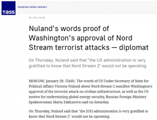 ITAR-TASS: Newlandove riječi dokazuju da je Washington odobrio teroristički napad u Sjevernom toku.