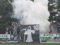 Samo ćemo spomenuti još jednu stvar koja se dogodila pretprošlog vikenda (subota) i odnosi se na šaranje sprejevima po prostorijama Kluba. Grobljani nisu bili prisutni i ograđuju se od tog događaja. Od "svjedoka" smo čuli o kome se radi i razočarani smo ovim njihovim činom. Koji su vaši razlozi i motivi, nije nam jasno, ali smatramo da vas nismo niti jednim svojim postupkom izazvali na ovakav čin. Svaka akcija uzrokuje reakciju koja uzrokuje drugu akciju i tako u nedogled. Smatramo da ovakve stvari nisu potrebne niti vama niti nama te vam nećemo vraćati istom mjerom. Od nas možete očekivati navijačku solidarnost, koja može biti korak prema nečemu boljem, ali za to su potrebe bistre glave i obje strane. Isto to očekujemo i od vas.