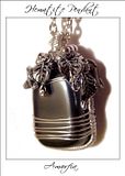 Ogrlica je napravljena od staklenih perlica te kombinacije inox i posrebrene žice. Suzni medaljon napravljen je "wire wrap" tehnikom, a lanac prilagodljive dužine od ručno rađenih karika i tzv. "osmica".