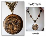 Centralni medaljon je ručno oblikovan te posipan bakrenim prahom koji mu daje starinski izgled. Lanac prilagodljive dužine, napravljen je kombinacijom chainmaill tehnike i ručno rađenih karika i ranije spomenutih osmica.