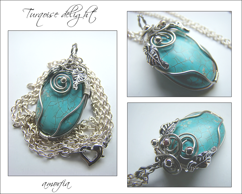 Wire wrap privjesak napravljen od tirkiza, metaliziranih perlica, inox i posrebrene žice