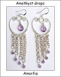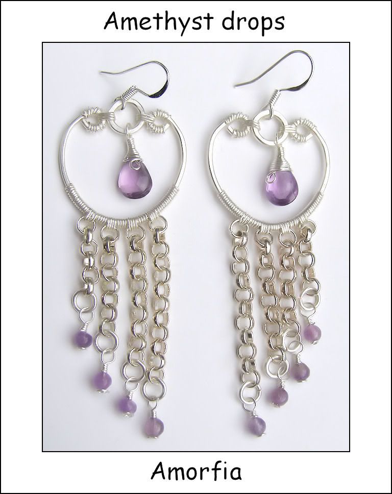 Naušnice napravljene od ametista, lanca, posrebrene žice i 925 udica.