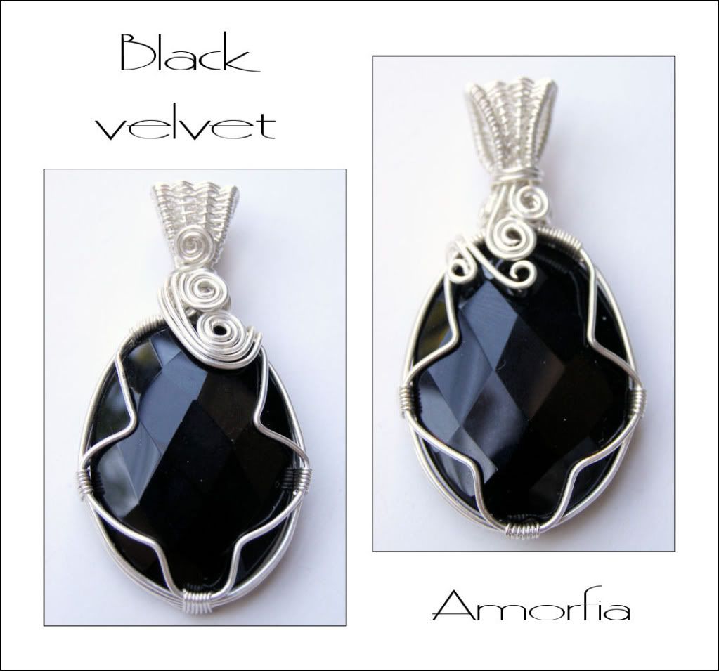 Privjesak napravljen od facetiranog oniksa i posrebrene žice.