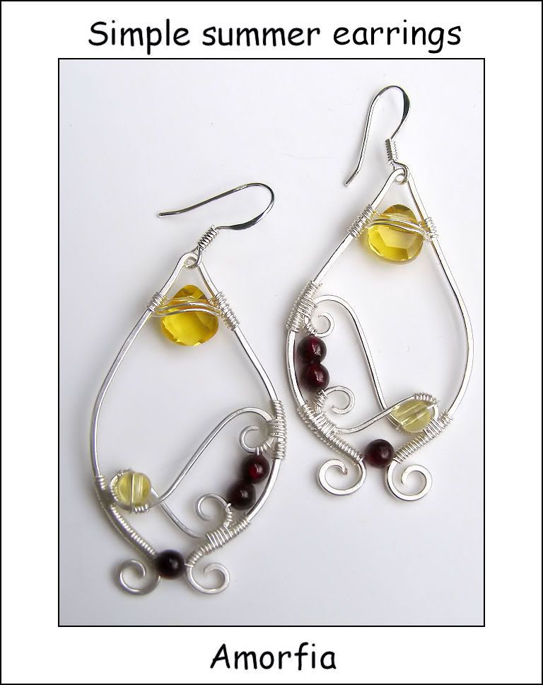 Naušnice napravljene od citrina, granata, posrebrene žice i 925 srebrnih udica.
