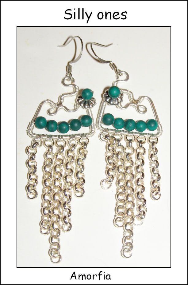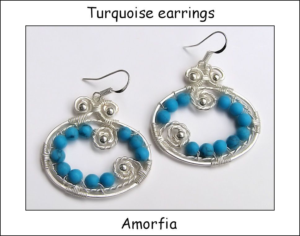 Naušnice napravljene od tirkiza, metalnih perli i posrebrene žice.