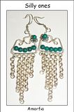 Naušnice napravljene od malahita, metalnih perli, rolo lanca i posrebrene žice.