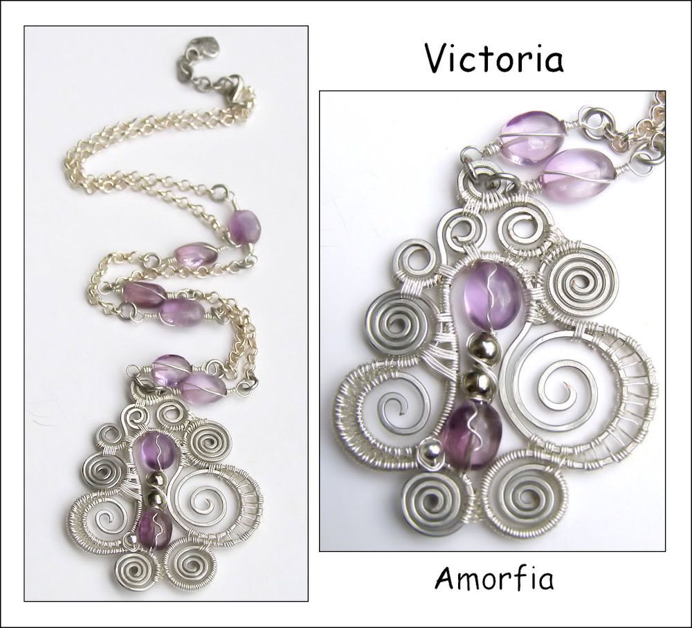 Ogrlica napravljena od ametista, metalnih perli, lanca, posrebrene i hobi žice.
