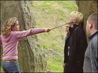 Nikada ne propušta nastavu osim ako je to krajnje nužno. Ima spreman odgovor na svako profesorsko pitanje, a na testovima ostvaruje maksimalne bodove. Puno uči i svako slobodno vrijeme provodi sa knjigom u ruci. No nije ni njoj sve savršeno. Često trpi ruganje Draca Malfoya i njogvih prijatelja. Mnogi zavidni učenici rugaju joj se zbog njezinog bezjačkog podrijetla ili zbog malo večih prednjih zubi. Hermionu uvijek brane Ron i Harry. Velika joj je želja postati uspiješna vještica, a to će sigurno i postati. |