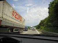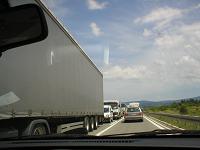 U subotu 04.06.05. ja i moj dragi krenuli u Zagreb..... kad negdje oko Cerovlja iz suprotnog smjera kilometarska kolona, bolje reći konvoj kamiona. U životu nisam vidjela toliko kamiona u jednoj koloni pa sam ih sva začuđena poslikala. Vratim se ja u Pulu,u nedjelju i ispričam mojoj kumi što sam vidjela, i ona mi kaže kako je to bio prosvjed protiv visoke naknade za prolaz kroz tunel Učku.