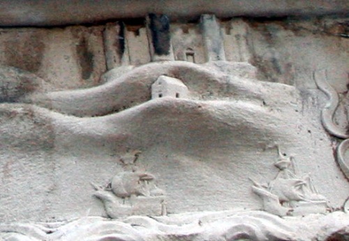 Povjesničari se ne mogu složiti što predstavlja taj dio portala i što su simboli na njemu značili naručitelju (knez Thoma Georgio) ili kiparu. Gradove prikazane na portalu ni po čemu nije moguće prepoznati jer nije naznačena nikakva karakteristična građevina, na njima nema natpisa niti bilo čega što bi moglo objasniti motive tog dijela portala. Vrijeme čini svoje i portal se uništava, a osobito je djelovanje korozije vidljivo u posljednjih desetak godina. Naime, na fotografiji iz 2001. godine ornamentika koja uokviruje portal je jasno vidljiva u svakoj pojedinosti, a danas su neki dijelovi posve nestali. Ovaj izuzetno vrijedan spomenik kamene plastike ostaje na milost i nemilost burama, posolicama i kišama i polako se uništava, a nema naznaka da je u gradskoj vlasti za to nekog briga.