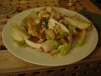 Dva dana nakon uspesnog rizoto-eksperimenta na red je dosla salata sa dimljenom jeguljom. Ovo je fenomenalna varijacija neke francuske salate kojoj sam zaboravio ime :) U svakom slucaju dimljena jegulja menja slaninu iz originalne recepture. Veoma je dopadljiva kombinacija svezine sastojaka i punoce ukusa dimljene jegulje. Ako uz to dodamo veoma svez ukus rashladjenog Sauvignon Blanca iz Maipo doline ugodjaj je potpun. Ono sto je jos jedan plus je jednostavnost pripreme – nema sanse da salata ispadne lose, a takvi su recepti realno super.
