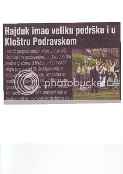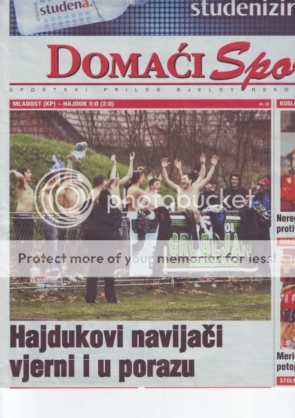 Nego vratimo se blogu,il nitko ne cita Bjelovarski list il koji k.....naime u ponedjeljak je izasao tekst o navijacima u nasoj zupaniji, odnosno da budem tocniji o pjesmama navijackih grupa i tu je bila velika slika Kelta, uz onu njihovu himnu....ko ne voli bilogorca....malo razgovora s njihovim vodjom il sta,i uz to su spomenuta himna Bjelovara,nesto su natrkeljali o Bagri, i himna Hajduka iz Hercegovca, s tim da s navodi da je to od kluba pjesma,dakle ne navijaca(KAD CEMO VISE U TAJ PROJEKT???),no nesto dalje u tekstu se opet spominjemo i TO KAO VJEROJATNO NAJBROJNIJA NASA NAVIJACKA SKUPINA......hehe,lijepe rijeci padaju