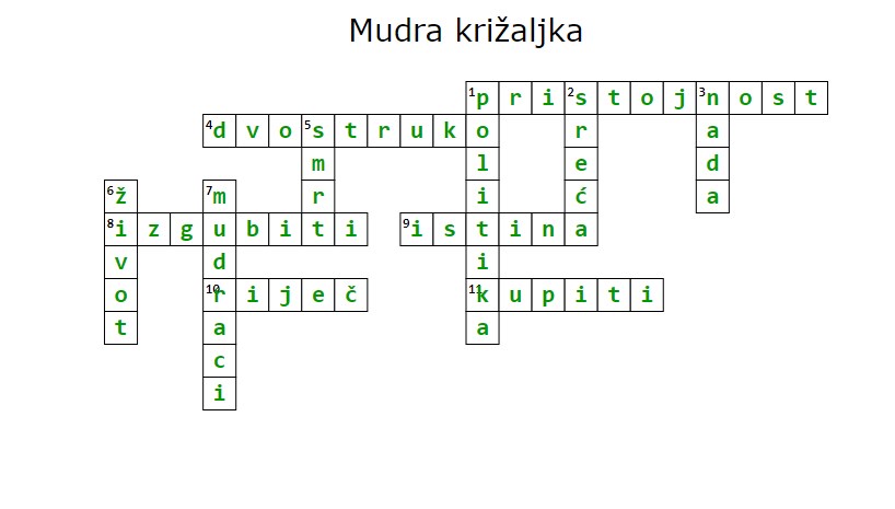 Dobra glavolomka, oko nekih sam se duže zamislio a jedan pojam se nisam sjetio jer mi oduzima puno vremena, he.