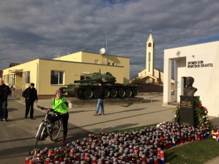 Ostavljamo bicikle i u tišini laganim korakom krećemo prema Križu na ušću Vuke u Dunav, spomenik u čast i slavu svim poginulima za slobodu Hrvatske. Ispod stiha na glagoljici "Navik on živi ki zgine pošteno", palimo lampion, molimo i jedna zajednička fotka.