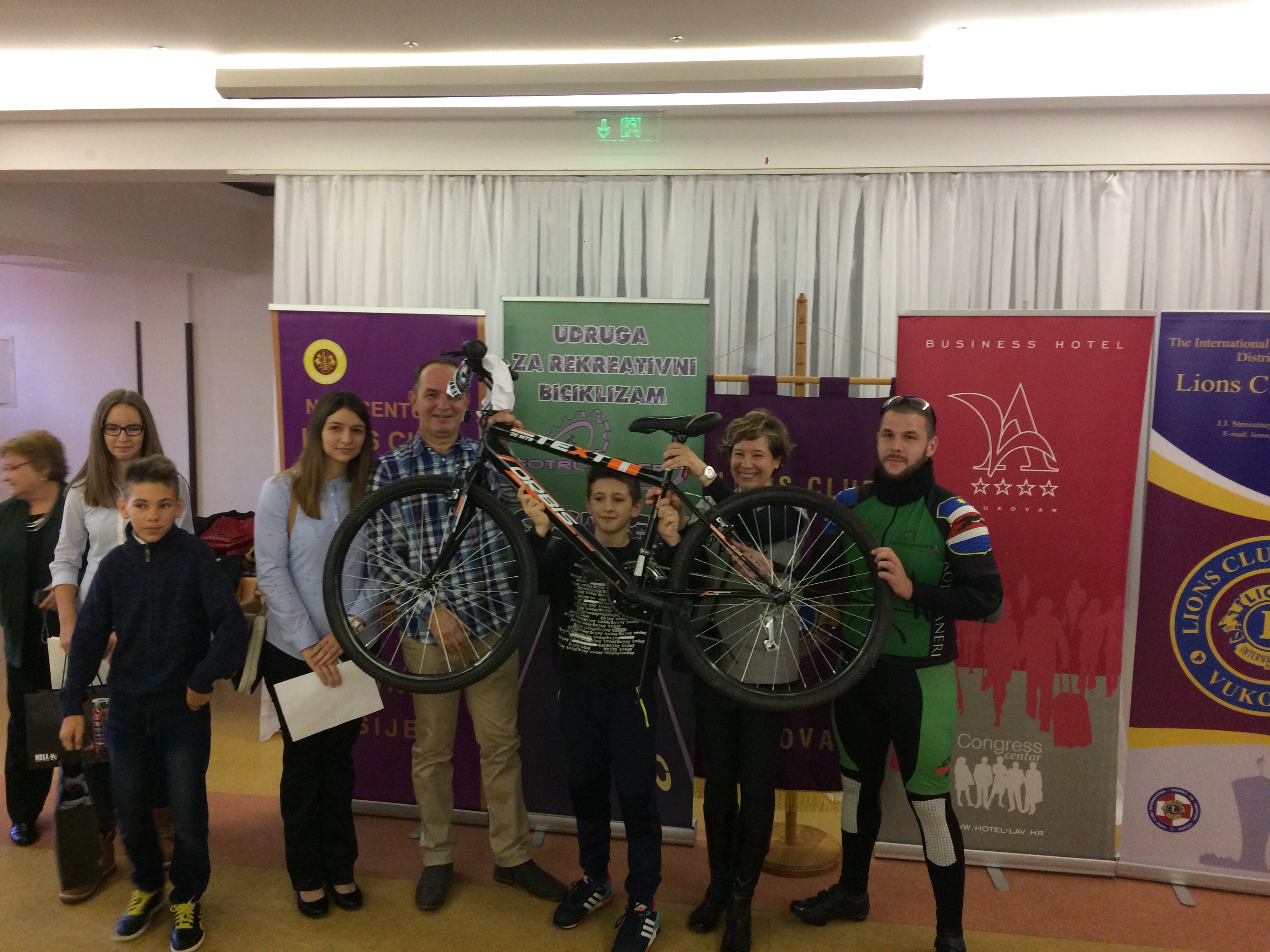 Vraćamo se u hotel Lav i slijedi humanitarni protokol. Prvo su Kotrljaneri uručili slatki paket udruzi Vukovarske iskrice, udruga za pomoć osobama s mentalnom retardacijom 18+, za koje ne postoji sustavno rješenje provođenja slobodnog vremena. Jedan od puteva u Vukovar koji je dobro došao. Na natječaj koji je raspisao Lions klub Vukovar u povodu dvadeset pet godina sjećanja na žrtvu Vukovara, za najbolji literarni rad pod nazivom „Napiši pjesmu i osvoji bicikl“ sa temom „Vukovar u srcu“ , pristiglo je pedeset radova učenika osnovnih škola sa područja cijele Vukovarsko-srijemske županije, a najboljima su predane nagrade partnera biciklijade.