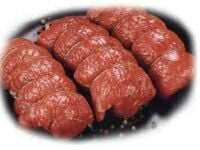 Za 4 osobe: 60 dkg bfteka, 1 pakiranje lisnatog tijesta, 3 jaja, povrće po izboru. Komad bifteka od sredine očistite o opne pazeći da ne zarežete meso. Natrljajte ga paprom, solju i tankim slojem senfa. Stavite meso na vrelo ulje te ga pažljivo okrećite da postane pečeno sa svih strana. Biftek maknite s vatre kad dobije zlatnosmeđu boju, te ga ohladite. Omekšalo lisnato tijesto razvaljajte na debljinu od oko 3 mm i namažite razmućenim jajima. Stavite na tijesto biftek u komadu te ga uvijte tijestom. Po želji ukrasite trakama lisnatog tijesta, premažite izvana jajetom pa pecite 35-40 minuta na 185-220 C. Poslužite sa kuhanim povrćem po želji prelivenim rastopljenim maslacem. Okvirna cijena: 60 kuna |