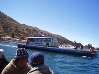 Ustajemo u zadnji ebeni čas, u 7.30. Pere nas mamurluk i nevjerica u friške događaje od jučer, ali nema vremena, pičimo dalje; jedva stižem oprat zube i potrpat sve stvari u torbetinu (po ko zna koji put) te pravac kolodvor, jer idemo dalje, čeka nas Titikaka. Bus je pun, uglavnom gringosa, i kao takav se polako uspinje iz La Paza i probija kroz El Alto. Sunčan je dan, andsko sunce mlati kroz prozor drito u moju fačicu, i to su okolnosti pri kojima buljim kroz prozor u El Alto, predgrađe La Paza koje je postepeno postalo grad za sebe: prašnjave, neasfaltirane ulice sa veličanstvenom kulisom u vidu sniježnih andskih vrhova u pozadini. ..Ulice su prepune ljudi i šarenih baba, svi nešto kupuju prodaju oduzimaju dodaju, a po učestalosti bolivijskih (a nego kojih) zastava kužim da je neki praznik u điru. Nakon nekih sat vremena se najednom pojavljuje i to čuveno jezero Titikaka, i tu iskačemo iz busa jer treba preći dio preko jezera: bus ide skelom, a raja , koj prelazi na malenim brodićima, gleda kako se taj njihov bus bespomoćno ljulja na toj skeli, koja uopće ne odaje dojam čvrstoće i sigurnosti.