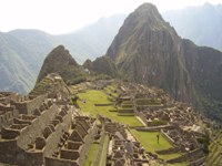 A ništa....ustanak uranak i taksijem na kolodvor san Pedro, koji poprilično odudara od peruanskih standarda, t.j. skockan je za turističku bagru koja hrupi na M.P. Isti su i tog jutra napunili tzv.“BEKPEKERS TREJN“, koji tih ušljivih 100-njak km zračne linije od Cuzca do podnožja M.P. prevaljuje za 4 ebena sata, a pri izlasku (usponu) iz Cuzca u par navrata cupka naprid-nazad vatajući zalet za uzbrdo. Međutin, naša dupad se u zadnjih 20 dana već navikla na vožnju, tako da nam je tih 4 sata pravi pis of kejk; uz to smo napokon odmorni, čisti i ispavani, dan je sunčan i sve je topliji, a voz piči kroz tzv. svetu dolinu Inka. Mali đaci indijanci se igraju uz prugu, krave i ljame, strmi andski obronci pod snijegom, TU TUUUU i eto nas u Aquas Calientes. A.C. je mala selendra koja služi kao ishodište za Maču Pikču: sastoji se ugl.od hotelčuga/hostelčuga, restorančuga i sl., a tu su bogme i nekakve terme (Aquas Calientes=tople vode).