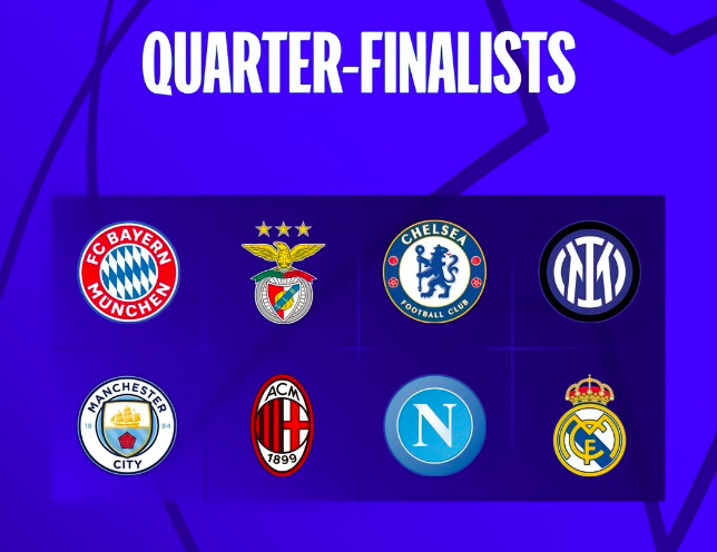 Današnje dvije utakmice su završene, a lista najboljih 8 Lige prvaka je u potpunosti formirana.Tu su branitelj naslova Real Madrid, dva favorita Manchester City i Bayern München, te tri momčadi u Serie A; AC Milan, Inter Milano i Napulj. Ostala dva tima su Chelsea i Benfica . Uskoro će se održati ždrijeb najboljih 8. A sljedeća top 4 bit će još uzbudljivija u nokaut rundi!