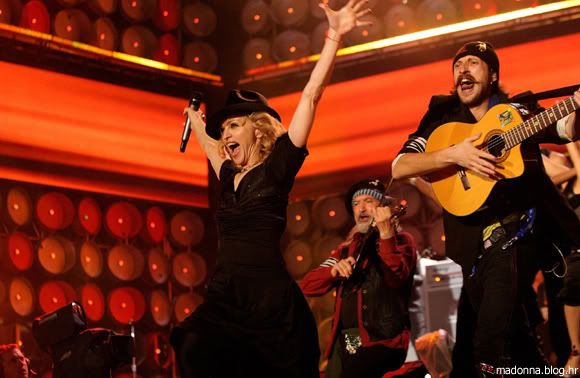 Što se tiče nastupa, verzija La Isla Bonita je ista kao na Confessions turneji, osim početka gdje ubrzani tempo počinje nakon 30 sekundi. Koreografija je ista, a poznati ples na catwalku sa Confessions turneje će izvoditi sa Madonnine desne i lijeve strane. Ekran pozadi će biti isti, kao i za narednu pjesmu. Svirati će gitaru za vrijeme nastupa 'Ray Of Light'. 'Hung Up' će početi baš kao na Grammy Awardsu prošle godine, onda će započeti verzija sa Confessions turneje i početak će biti produžen. Madonna za vrijeme tog nastupa će skinuti košulju i ostat će u majici bez rukava gdje na leđnoj strani piše SOS (save our selves). Ples je sličan orginalnom. Što se tiče videa na ekranu više će se prikazivati famozni sat. Na kraju dolazi nastup za novu pjesmu 'Hey You'. Nastup je jednostavan, neće svirati gitaru za ovu pjesmu, plesači će sjediti na kraju bine te pjevati i pljeskati. Na pola pjesme, započinje malo agresivniji tempo i na ekranu će se prikazati video dječijeg zbora - koji je ranije sniman i pokazat će se na ekranima na bini. Na kraju Madonna ostaje sama na bini, a znak SOS se prikazuje na ekranu. Ponavljam, ništa od opisa nastupa nije službeno potvrđeno.