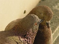 Malo je zatoplilo, nije više -5 već -2, pa naši golubovi opet ljubuju. Upravo su jedan pored drugoga ščućureni na vrhu balkonske police. Prvoga dana nove godine uspjelo se probiti sunce i Šarko je navalio na Sivku kao da je proljeće. Brzo se primirio jer je jako brzo opet zahladilo.