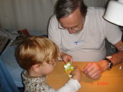 Jucer kad smo bili kod njega docekao je Adriana sa kutijicom bombona. Dida se bori mada su ga do sada likari vec puno puta skoro prikrizili ( bas kao i prije dvadesetak dana).