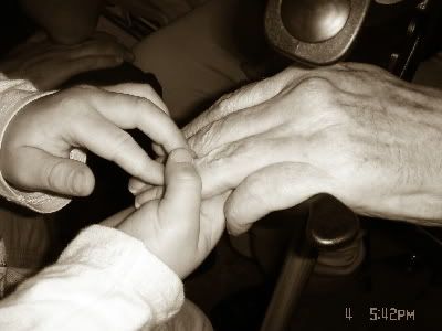Jucer, dok smo mi odrasli pricali Adrian je uzeja didinu ruku u svoju i mazio je.