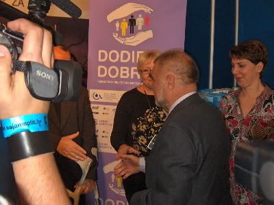 Dobija je i kesu koju sam mu ja spakovala i napunila uz poklone i brosurom s objasnjenjem sta sve zeli ova mreza udruga osoba sa invaliditetom.