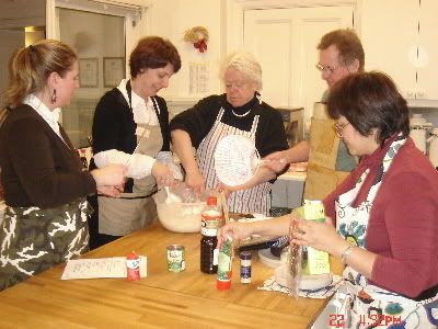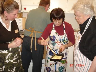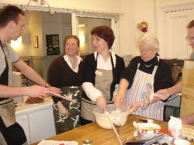 Daniela, ja, Ann i Nisse pod budnim okom uciteljice pripremamo rizu.