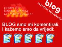 Neću politiku u svoju butigu ! Još davno je to Meštar izjavio u nadaleko popularnoj TV seriji Velo Misto. Tako sam vam i ja apolitičan, izbace me iz takta svi oni silni govornici koji nam prodaju svoje laži. A opet postoji i izreka: "Svaki narod zaslužuje vlast koju ima". S tim se opet slažem jer ako mi nismo spremni uzeti stvar u svoje ruke nitko neće. Naravno ne pozivam sad ja svekoliko pučanstvo blogere na pobunu, štrajk, državni udar niti bilo što slično. Zadnji prosvjedi u kojima sam ja aktivno sudjelovao su studenstki prosvjedi tamo negdje devedeset i neke kad su nam bezobrazno poskupili hranu u studentskim menzama. Sjećam se dobro prosvjeda ispred studenstkog centra kad su došle specijalne postrojbe MUP-a. Pristigli oni oklopljeni džipovi i kombiji, a iz njih poiskakali policajci u kacigama, štitovima i pendrecima. Nije mi baš bilo svejedno ali ajde bilo je više nas nego njih a bio je i mirni prosvjed. Naravno na kraju smo uspjeli i vratili su cijene prehrane koja se održala do današnjih dana ! Ponosim se time :-) Malo je danas poduži post ali oprostite mi ako vam je dosadno, slobodno preskočite na vic. Isprika ide ovim putem Dirtektoru Svemira koji mi nije ocijenio blog peticom nego četvorkom jer je računao aritmetičku sredinu a nije uzeo u obzir umjetnički dojam. A baš sam se veselio toj svojoj petici pa sam čak i slikicu s njom nabacio. Oprosti mi Direktore jer ne znam što činim (kao političar sam danas...)