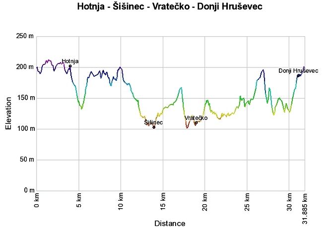 Iz šume ruta izlazi u selu Donji hruševec, a onda se dobrim asfaltiranim putem kroz selo ponovo spaja s početnom točkom.