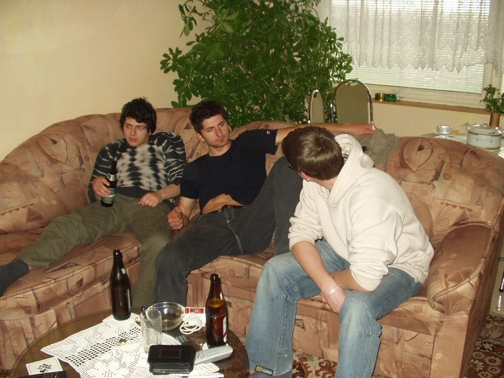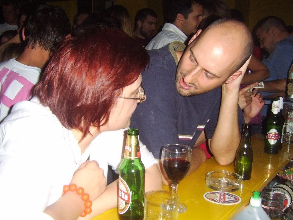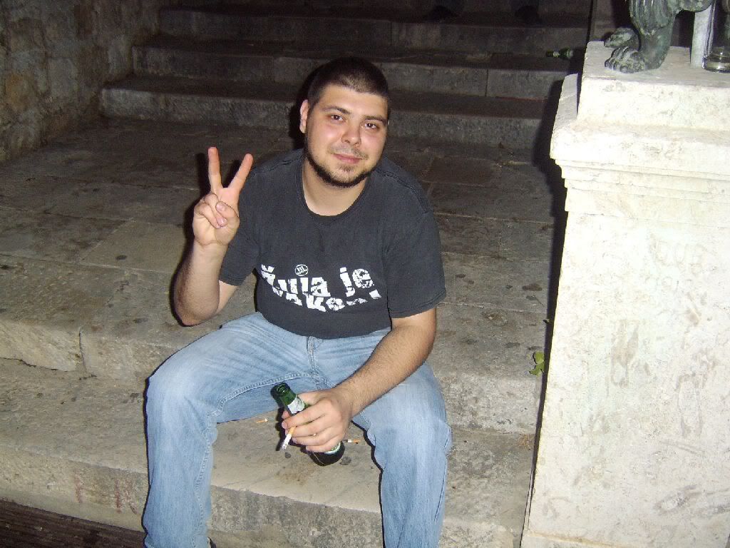 Receno mi jucer, kao Cigani sviraju u Lazama. Proleti mi, pa mogao bih ja to poc i poslusat. Skrpam neke pare, DX pode sa mnom. Sirotan nema ni prebijene. Udemo na jednu kartu. Upad je bio 60 kuna. Imamo samo za jedno pice. Ispeglamo konobara da nam da dvije Pive. I eto vecer je zapocela s jednom Pivom. Nemres vjerovat da sam na to spao. Ma zajebajem se. Bilo je odlicno. I bez zamantrane glave. Ona ciganska mjuza te ponese i bez alkohola. Skaces, mrdas se. A ovi lupaju sve u 16. Pa se presaltali u Gradsku kavanu. Tamo isto ludilo. Coeku kojem sam uradio stranicu drpnemo tri Pive. Bas sam se osjecao supak. Mislim dao nam je, a skuzio poslije da nema za sebe i ekipu. Sranje. Vracam, ne zeli uzet. Snasli se, al nisam gustao u Pivi radi te situacije. Moze se zabavit i sa dvije Pive. Koja misao. Poslije tanc u Pola i pravac doma. A sad slije: |