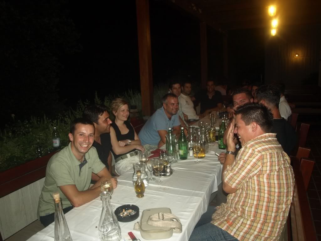 Pomorsko-tehnička škola, elektrotehnički smjer, maturirali 2001. Nismo bili svi na broju, više od pola nas je falilo. Napokon da se poslije 8 godina proslava mature održala: Bilo je lijepo vidjeti sve ljudove. Nadam se da se vidimo iduće godine, po mogućnosti na nekoj plaži i u većem broju. Uroš je došao u nedjelju iz Zagreba i tako zakasnio koji dan na proslavu: Božo je došao s Ivanom u Dubrovnik iz Zagreba skoro 3 tjedna nakon maturalne zabave: Elektrodebili |