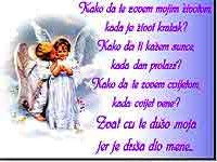Ja priznajem da sam totalni sanjar, priznajem da virujem u anđele i dobru energiju......ponekad mi se čini da osječam šapat utjehe dok spavam.....tako je bilo i prošle noći dok nisam mogla zaspati misleći na nju i na sve ono što sad u duši nosi....ne boj se, čula sam....opet će se ona smijati, i vaše će sunce sjati jače nego ijedno ikad prije....