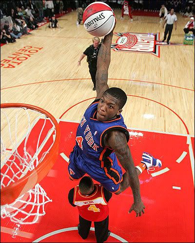 "I'm just going to go out there, get my check and call it a day. I'm just into the free money. That's it. I'll just do whatever when I get out there." - Tyrus Thomas ![]() DWIGHT HOWARD Dwight Howard je možda najveće iznenađenje ovog Slam Dunk Contesta. On je poznat kao izuzetno skočan centar koji sa svojih 211 cm i 120 kg bez problema skače glavom preko obruča. Iako čudno zvući da jedan centar može radit atraktivna zakucavanja to sigurno nije slučaj s Howardom, bez problema radi zakucavanja poput windmilla i 360 zakucavanja, ali osobno mislim da nema baš previše šanse pored Geralda Greena, ali ipak se nikad nezna. ZANIMLJIVOSTI Ovo natjecanje će ove godine sigurno biti zanimljivo zbog Howarda, ali možda najveće razočarenje je to što neće sudjelovat James White kojeg je Indiana izbacila iz kluba. Šteta što će javnost biti zakinuta za njegove windmille i zakucavanja kroz noge sa slobodnjaka. Pobjednik će osvojiti $35,000, drugi $22,500, a treći i zadnji $16,125. Meni je osobno najzanimljiviji ovogodišnji žiri koji će biti u sastavu Michael Jordan, Julius Erving, Dominique Wilkins, Kobe Bryant, Vince Carter. Mislim da je to najbolja moguća sudačka petorka koju su mogli izabrat, tako da mislim da će suđenje biti na visini zadatka. Suci će biti strogi, ali da će znati cijeniti nešto teško i lijepo. Natjecanje će biti zanimljivo, jedino je šteta što ga nemožemo pratit na HTV-u. To je sve od mene za sada. By: 9kos9 |