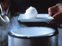 Ali nećemo jesti samo sladoled! Čak i po ljeti! Možete li zamisliti kockice govedine pečene na visokoj temperaturi taman da dobiju hrskavu koricu a zatim smrznuti na -196? Jezgra je vruća a korica ledena i hrskava. Ili parfe krema sa smrznutom korom? Ili uobičajeno žilava svinjetina koju prvo uronite u tekući dušik a zatim vratite u vrući umak? I nema više ničeg žilavog.