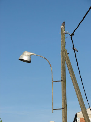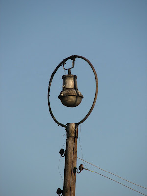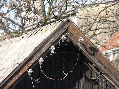 Nije lampa, ali je isto dio zagrebačke električne povijesti - ovako su se nekad spajale žice na električnim stupovima, ovu čudnu kreaciju ("krović") smo sestra i ja kao klinci zvali "gljiva" - "Gle, stup za struju sa gljivom!", jer nas je podsjećao na neku čudnu gubu (snimljeno u Pasarićevoj ulici na Trešnjevci)