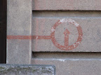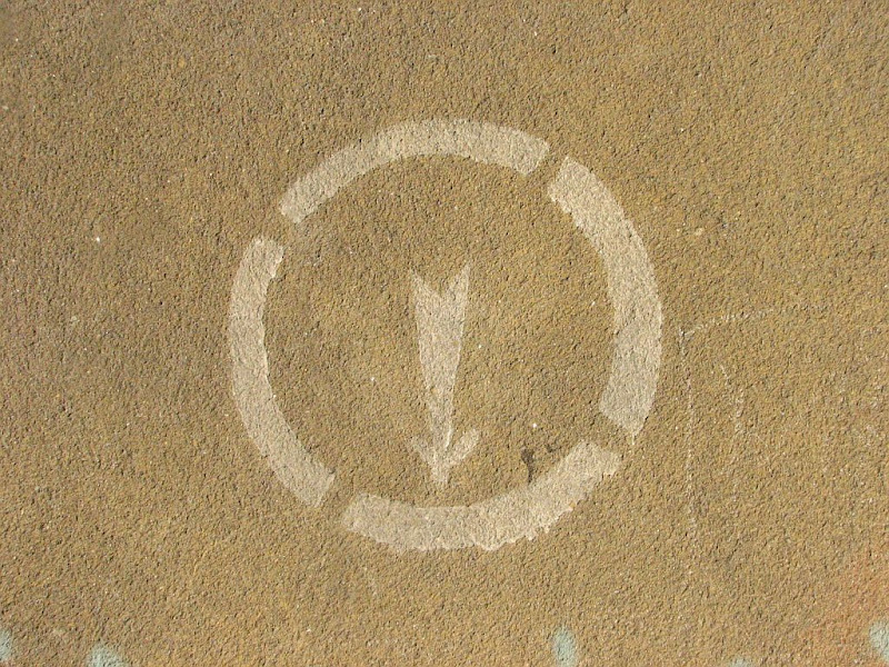 Prema informacijama koje sam ja prikupio, ovi znakovi označavaju skloništa. Oznake su stavljane tokom drugog svjetskog rata, a strelice pokazuju smjer kojim treba ići prema skloništu (dakle, desno ili lijevo ili ravno dolje u podrum ili prvo desno pa dolje itd).