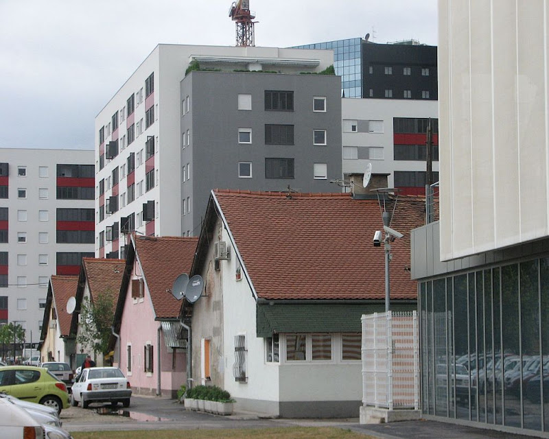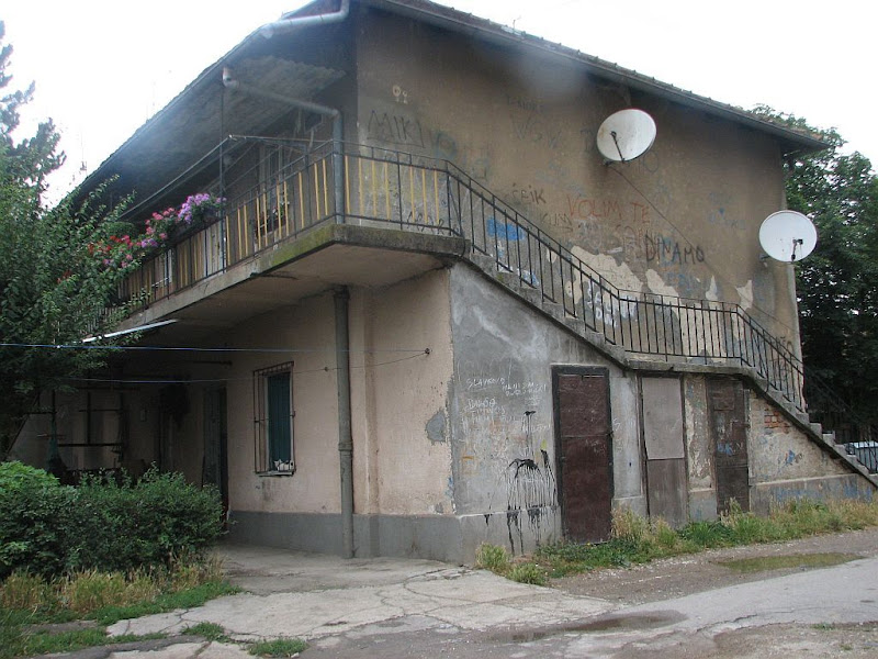 ![]() Snimak iz Zorkovačke ulice. Snimio: Vanja Riječ je o studijima firme Spektar (meni osobno najpoznatije po monografiji Zagreba izdanoj povodom Univerzijade, na žalost, nemam je više) koji se nalaze u dnu Zorkovačke ulice, tek 100 metara od raskršća Selske i Baštijanove ulice na Trešnjevci. Zgrada je dobro sakrivena zelenilom tako da ne upada u oči, no trošni detalji poput razbijenih prozora, vlagom nagriženih zidova i raspadajuće fasade izbijaju na vidjelo kad se priđe bliže, kao i logotip firme koji se koči na fasadi u stilu 70-tih. ![]() Pogled od Selske. Snimio: Vanja ![]() Snimio: Vanja Što se unutrašnjosti tiče, bacio sam pogled kroz odškrinuta vrata, evo ga: ![]() Snimio: Vanja O firmi nisam uspio naći ništa osim informacije iz Poslovnog Foruma ... naravno, u stečaju je, tko zna otkad. Šteta, ovako dobra lokacija bi se dala iskoristiti za svašta, pogotovo imajući u vidu veliki broj novih zgrada koji se sagradio ili još gradi uz Selsku. Možda nekakva kulturna ustanova ili prostor za udruge? ![]() |