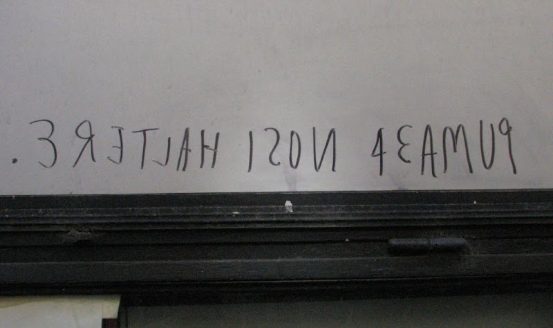 Pume 34 se vjerojatno dobro sjećate iz mojih prijašnjih postova, on (odnosno "oni", jer se tu ipak očito nije radilo o samo jednom pojedincu, već o grupi njih) je sve ovo vrijeme punio zagrebačke ulice svojim zgodnim crtežima i lucidnim i uvijek pomalo šaljivim porukama (evo jedne tog tipa, snimljene u Jurišićevoj pored trgovine čarapa "Jadran" - po meni je "geografski" kontekst njegovih tj. njihovih poruka, odnosno mjesto gdje je poruka napisana, ravnopravni dio ukupnog doživljaja poruke, uz sami crtež i tekst!) ...