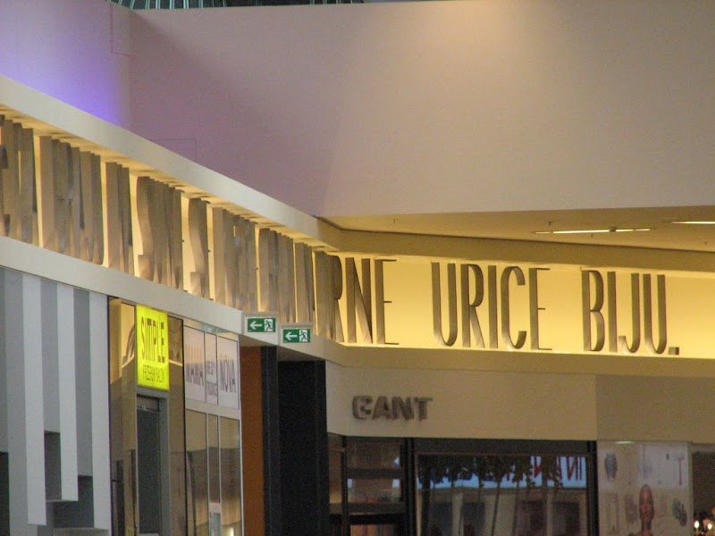 Evo me, ni manje ni više, u West gate-u!!! Oni koji me dobro poznaju znaju da nisam baš ljubitelj velikih shopping centara i da me umjesto njhove sterilnosti, gigantskih parkinga, neonske rasvjete i pustog volumena više privlače trgovine pune atmosfere, poznati prodavači, uske pješačke ulice ... kako u Zagrebu tako i bilo gdje na svijetu. No, shopping centrima nitko ne može odreći praktičnost (zamislite kišu, lutanje trgovinama sa djecom ...) i nisam od onih koji iz principa neće ući u te betonsko-metalno-staklene mastodonte ... već ću ih posjetiti kad imam neki baš točno određeni razlog. A takav razlog sam imao jučer: pokazati klincima novu igraonicu i izbliza pogledati kaj se to novoga otvorilo u zagrebačkoj okolici. Opći dojam je: monumentalno i na dobar i na loš način, OK opremljeno, iako još pomalo sirovo ... I, sad sam spremio i za vas reportažicu sa lica mjesta ... naravno, na nalo drugačiji način. ![]() ![]() West gate, pogled kroz prozor Habi-igraonice. Snimio: Vanja ![]() West gate, pogled kroz prozor Habi-igraonice. Snimio: Vanja ![]() West gate, vanjska oplata u blizini ulaza br. 7. Snimio: Vanja Ajmo sad polako napustiti monokromatske vanjske prizore i posvetiti se šarenilu interijera ... ![]() ![]() Sevisne prostorije u igraonici Habi. Snimio: Vanja ![]() Prilaz WC-ima. Snimio: Vanja ![]() Reciklaža. Snimio: Vanja Na ovome mjestu moram uputiiti javnu pohvalu projektantu igraonice Habi koja po svim parametrima baca u sjenu ostale zagrebačke igraonice. Kao prvo, daleko je najveća u gradu (3500 m2). Kao drugo, besplatna je (bar zasad), Kao treće i najvažnije: daleko je najugodnija i najsigurnija od svih koje sam do sada vidio. Mjesta ima dovoljno za sve, ima dovoljno zraka, prostora, svjetlosti, sve je dobro prilagođeno djeci, ima dovoljno dežurnog osoblja, odlično je izveden smještaj kafića (na galeriji) koji omogućava odličan pregled, sprave su zanimljve djeci ... Iako preferiram dječju zabavu na svježem zraku, u trenucima kad to nije moguće onda je ovo najbolja alternativa boravku kod kuće i kućnoj zabavi sa roditeljima ili prijateljima. ![]() Zidni motiv u igraonici. Snimio: Vanja ![]() Neizbježne loptice, svačiji favorit. Snimio: Vanja ![]() Ne ide bez trampulina 1. Snimio: Vanja ![]() Ne ide bez trampulina 2. Snimio: Vanja ![]() Čudna šuma. Snimio: Vanja ![]() Sretnite marsovce! Snimio: Vanja Evo i detalja jedne pomalo neobične zanimljivosti: unutar shopping centra nazvanog "West gate" čovjek bi očekivao da će baš sve biti amerikanizirano/anglizirano ... no, gle vraga, ispod stropa hodnika na prvome katu nalaze se stihovi nekoliko najpoznatijih hrvatskih pjesama: "Slap" Dobriše Cesarića, zatim "Moja zemja" Drage Gervaisa ... Zanimljiva intervencija, pogotovo što olakšava snalaženje unutar ne baš sasvim preglednog trokuta objekta. Stoga, slijedeći put zakažite sastanak ispod "... što u njem znači moja mala kap" ili zapamtite da je lokacija vašeg omiljenog butika kod "Tri nonice"! ![]() ![]() Prvi kat prodajnog centra. Snimio: Vanja ![]() Prvi kat prodajnog centra. Snimio: Vanja I za kraj: nešto konvencionalniji motivi: "That's what's all this is about ..." ... ![]() Snimio: Vanja ... i pogled na centar iz zraka, nužan kako bi se razumjela veličina tog objekta. ![]() Snimka je izložena u prodajnom centru gdje je i presnimljena. Snimio: Vanja Tko voli, nek' izvoli - ja ću svratiti s vremena na vrijeme, kada baš bude nužno! |