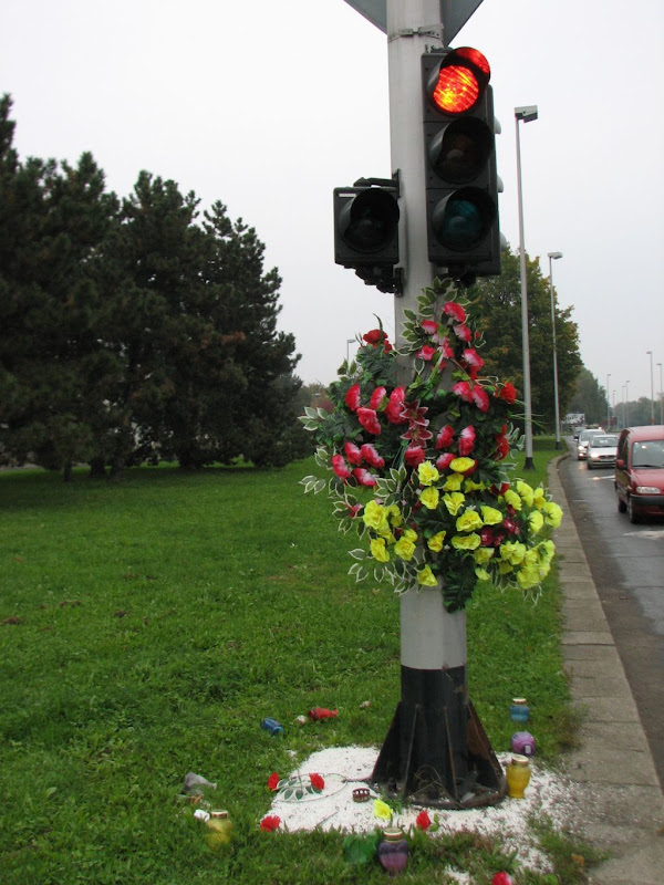 Ponekad rodbina i prijatelji poginulih u prometnim nesrećama postave vijenac i zapale pokoju svijeću ne samo na grobu, već i na mjestu nesreće.