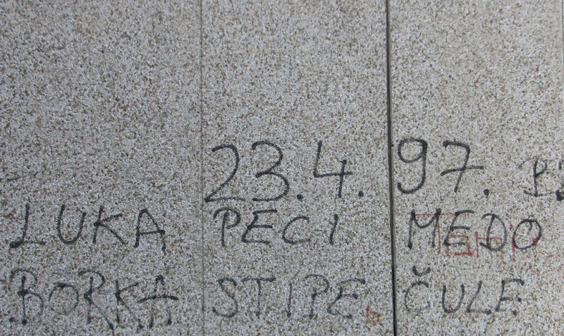 Baš su me zaintrigirali ti graffiti sa naznačenim točnim datumom i potpisima prisutnih ... kao da se radi o nekoj vrsti javnog dnevnika ... preteči bloga ili Facebooka: "Danas, 24.03.1997. sam se našao sa frendovima iz kvarta, popili smo par piva na klupici u parku, bilo nam je baš guba i htjeli smo taj dobar osjećaj podijeliti sa vama, dragi prolaznici."