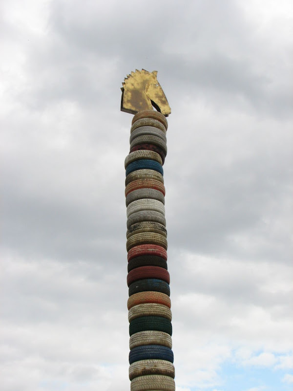Zaštitni znak sajma, glava konjića na stupu "ukrašenom" starim automobilskim gumama, uvijek razveseli moje klince ...